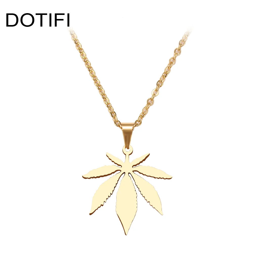 Best DOTIFI Stainless Steel Necklace For Women Man Maple Leaf Choker Pendant Necklace Engagement Jewelry