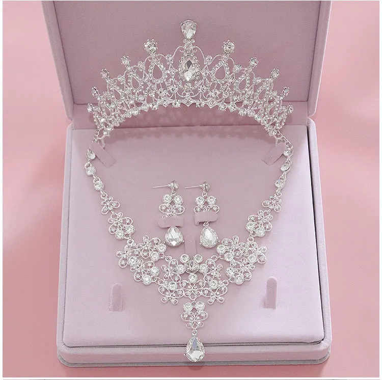 Best High Quality Fashion Crystal Wedding Bridal Jewelry Sets Women Bride Tiara Crowns Earring Necklace