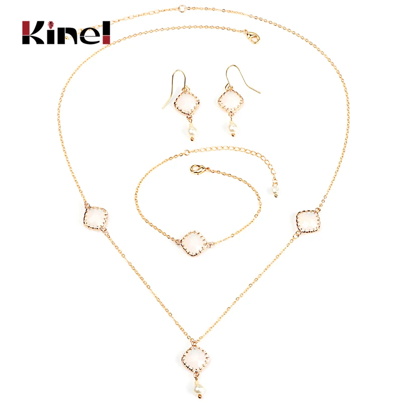 Buy Kinel Fashion White Opal Bridal Wedding Jewelry Sets Gold Color Women Necklace Earrings And Bracele