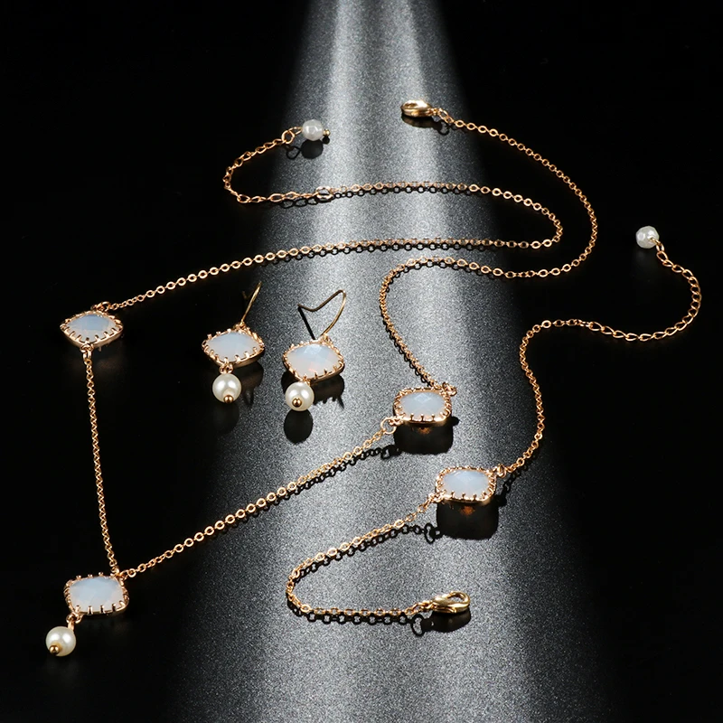 Best Kinel Fashion White Opal Bridal Wedding Jewelry Sets Gold Color Women Necklace Earrings And Bracele
