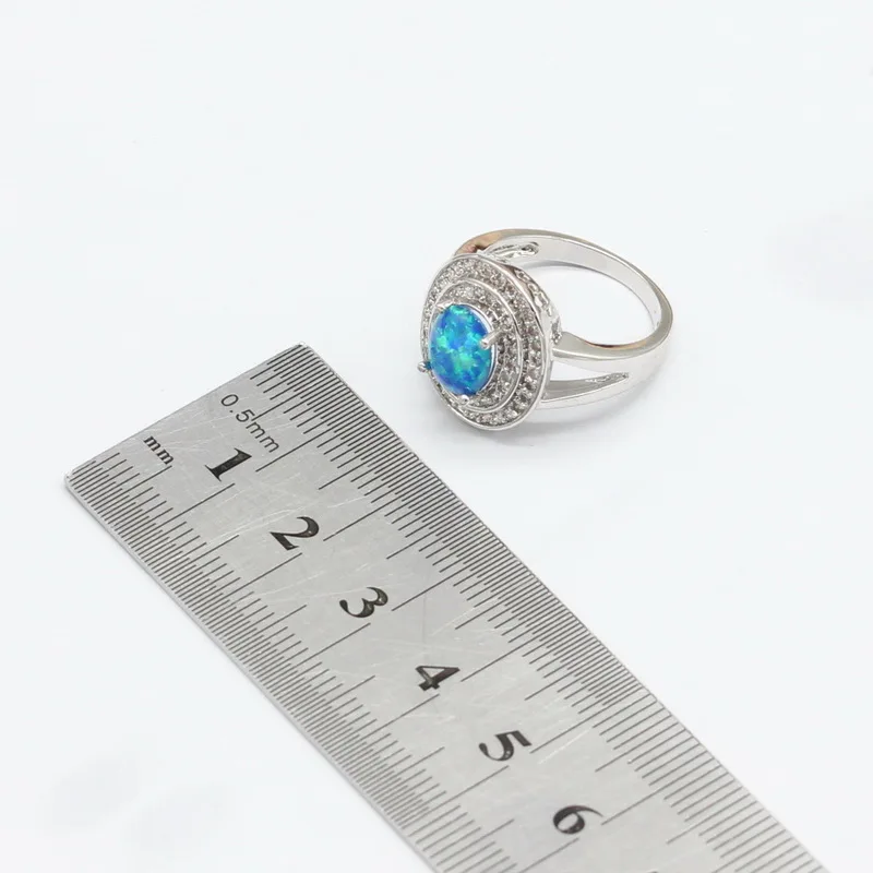 Best Oval Autralia Blue Opal Necklace Pendant Earrings Rings 925 Silver Jewelry Sets For Women Sky Blue
