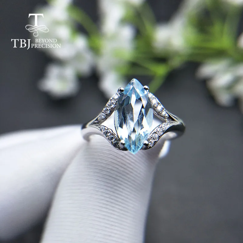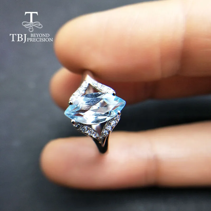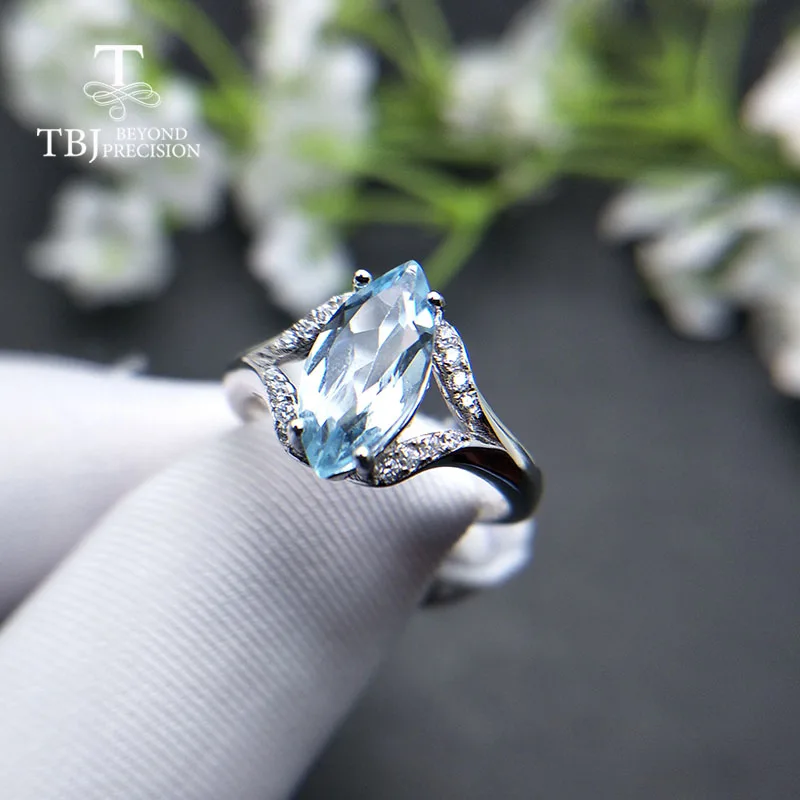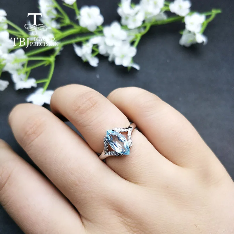 Promo TBJ2019 new design natural sky blue topaz 2.3ct gemstone Ring 925 sterling silver fine jewelry for