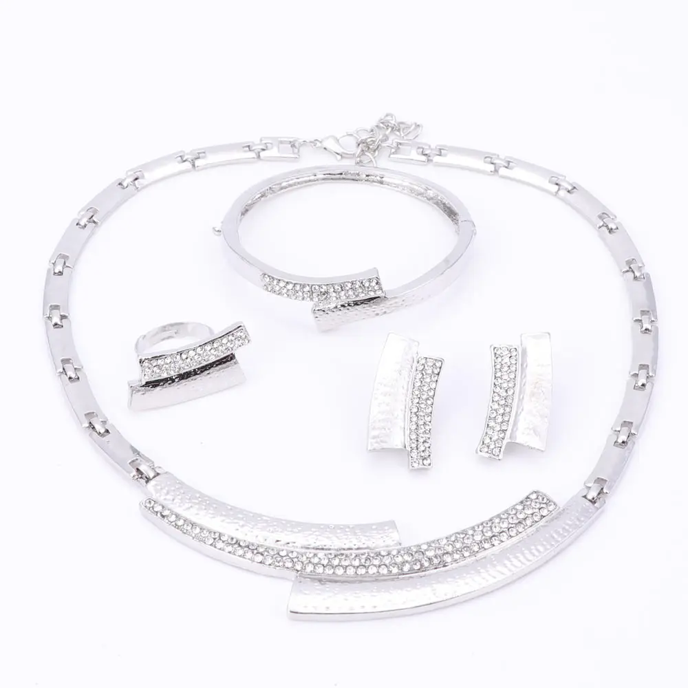 New Fine African Beads Wedding Accessories Jewelry Sets Crystal Silver Plated Bridal Necklace Bracelet