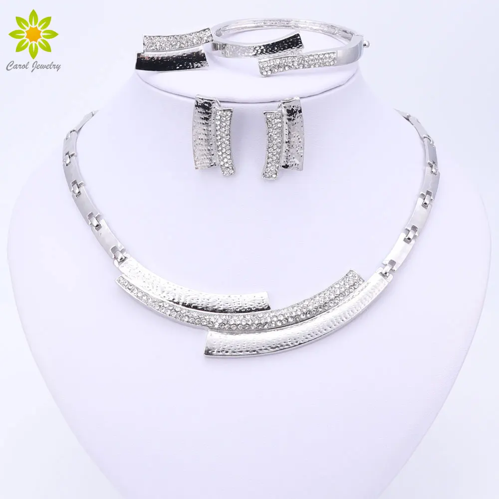 Buy Fine African Beads Wedding Accessories Jewelry Sets Crystal Silver Plated Bridal Necklace Bracelet