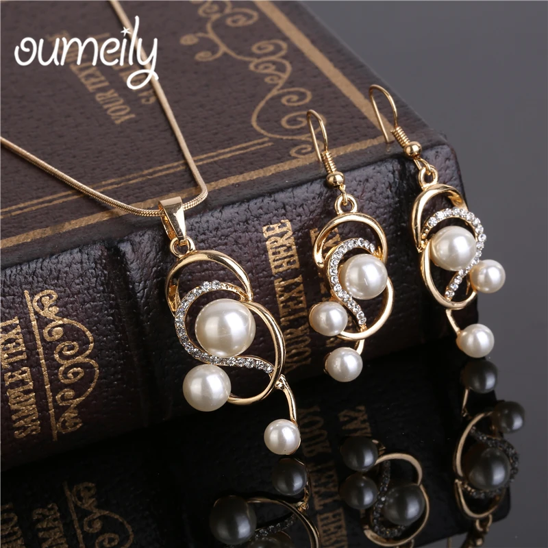 Buy OUMEILY Ethiopian Jewelry Wedding Gold Silver Color Set Imitation Pearl Jewellery Sets For Women Af