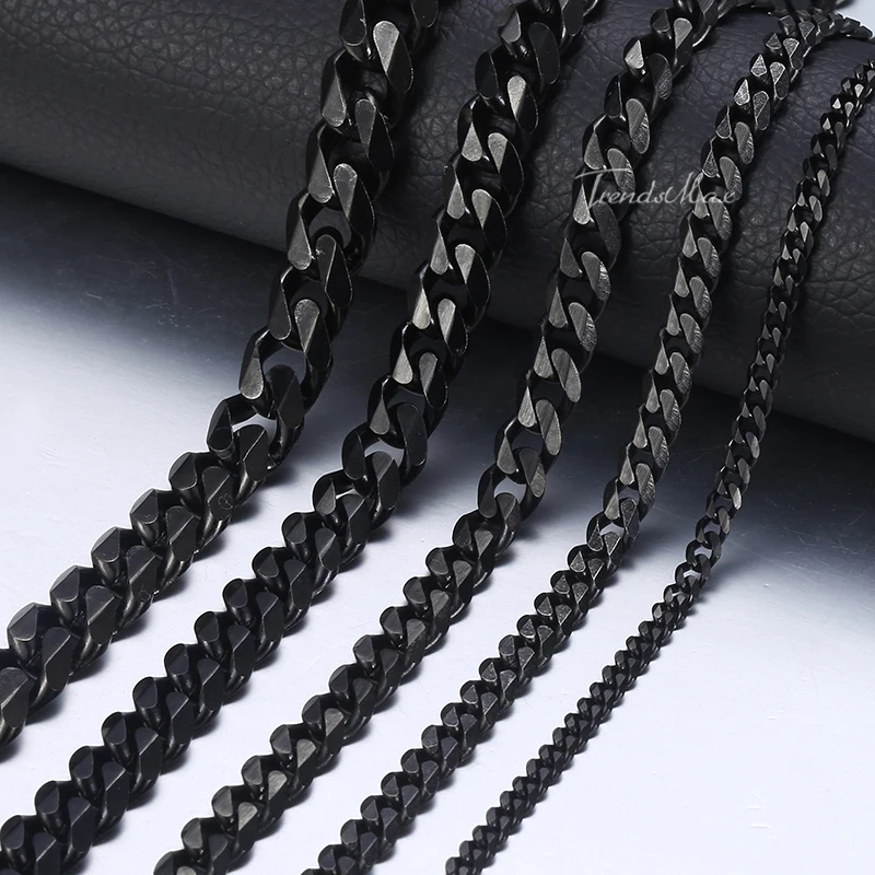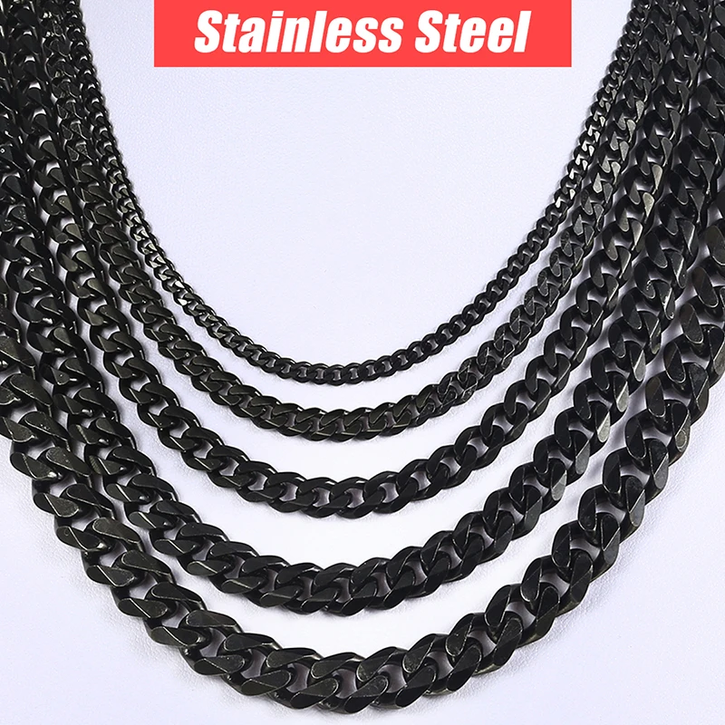 Best Personalized Men's Necklace Stainless Steel Cuban Link Chain Black Silver Gold Necklaces For Men 18
