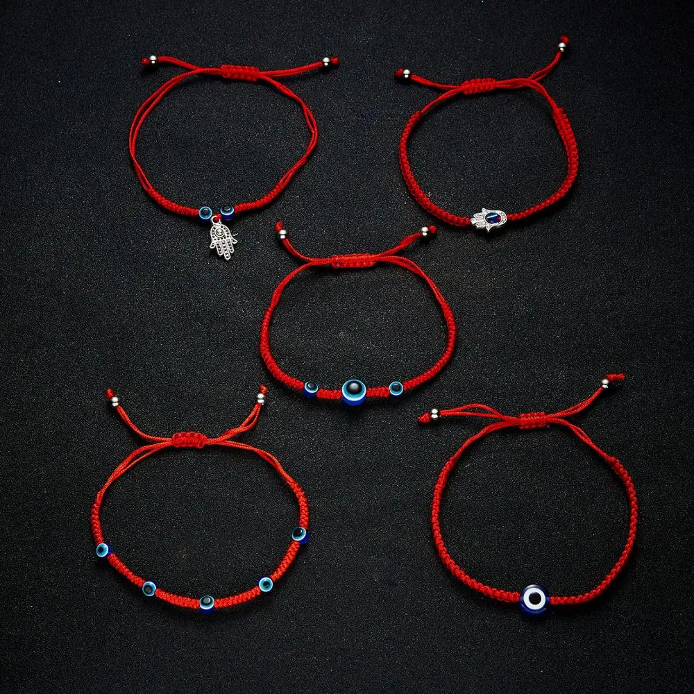 New Turkish Blue Evil Eye Red Lucky String Adjustable Bracelet for Women Blue Fatima's Hand Wishing Han