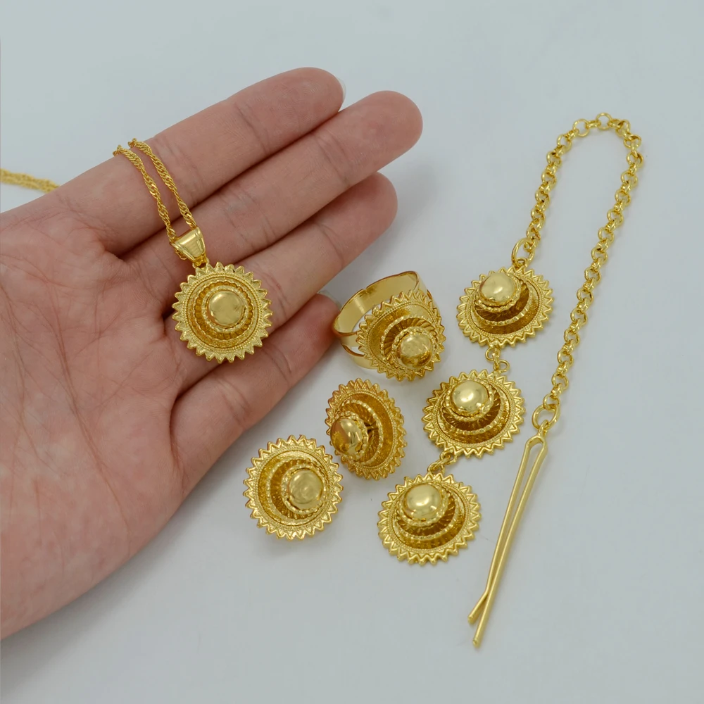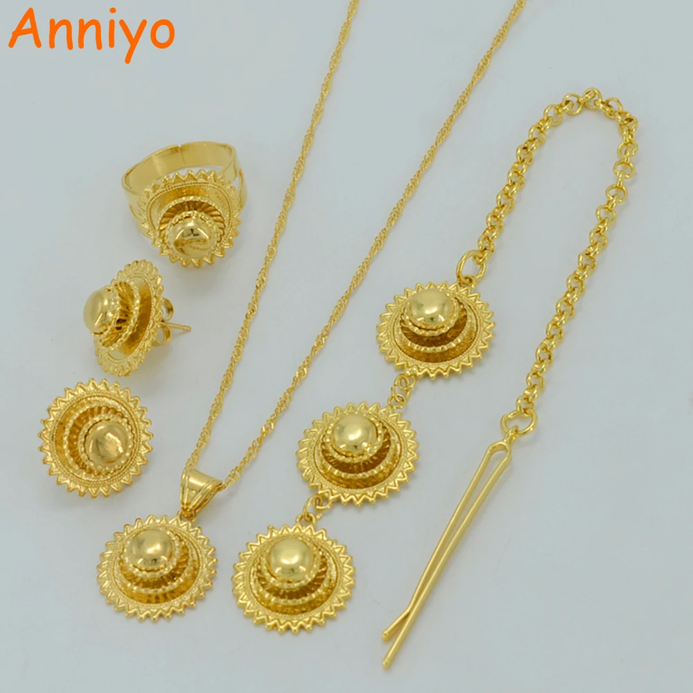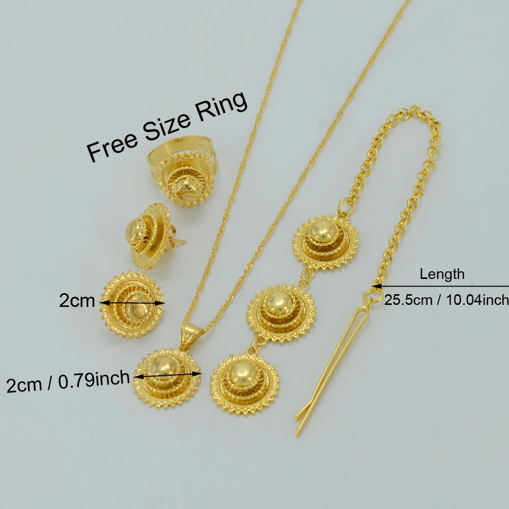 New Anniyo Ethiopian Jewelry sets Gold Color Forehead Chain(Hair Piece)African Jewellry Ethiopia Weddin