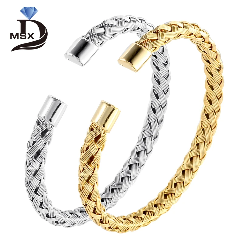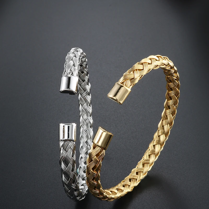 Promo Silver Color Stainless Steel Cuff Bangles Bracelets for Woman Man Gold Color Charming Wedding Party