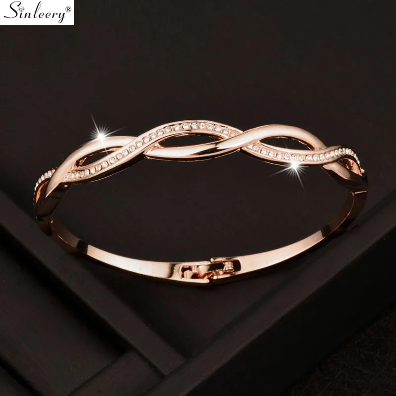 Promo SINLEERY Rose Gold Silver Color Charm Cubic Zirconia Hollow Bangle For Women Cross Bracelets Jewelr